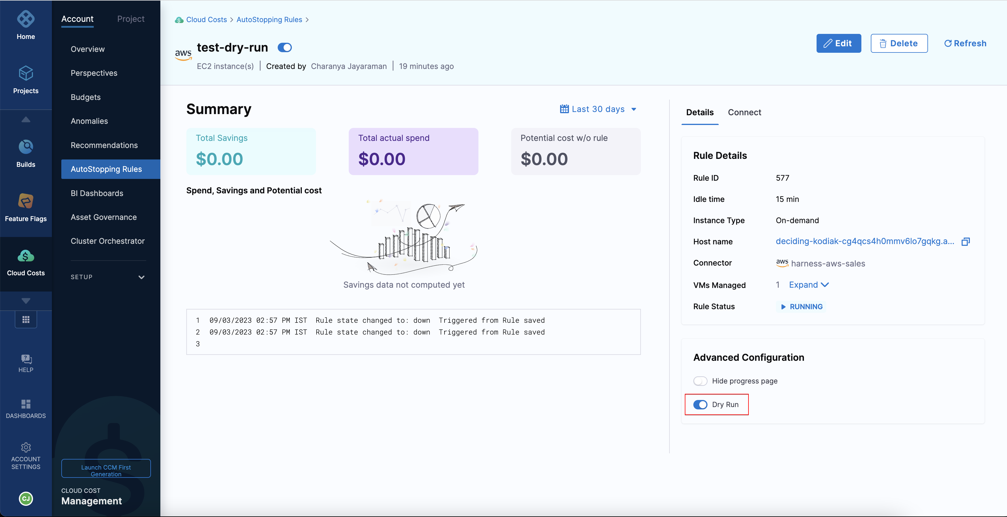 If the data is satisfactory, you can turn off the Dry Run mode to apply the AutoStopping rule to your cloud resources and start saving costs.