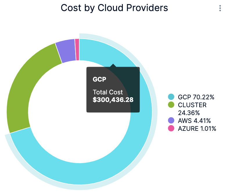 Cost by Cloud ProvidersThe cost of each cloud provider. For example, AWS, GCP, Azure, and Kubernetes cluster.