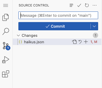 Now that you've made a few changes, you can use the integrated terminal or the source view to commit your work. We will use the Source Control view for this example.