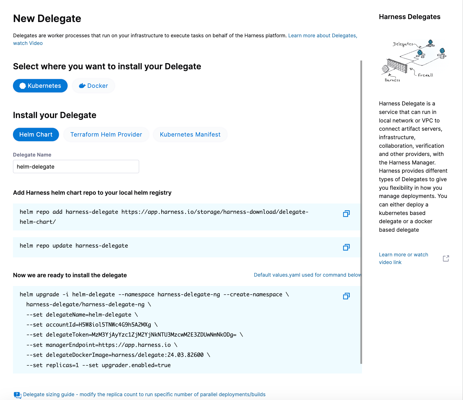 Along with the delegate token, you will also need to provide your Harness accountId