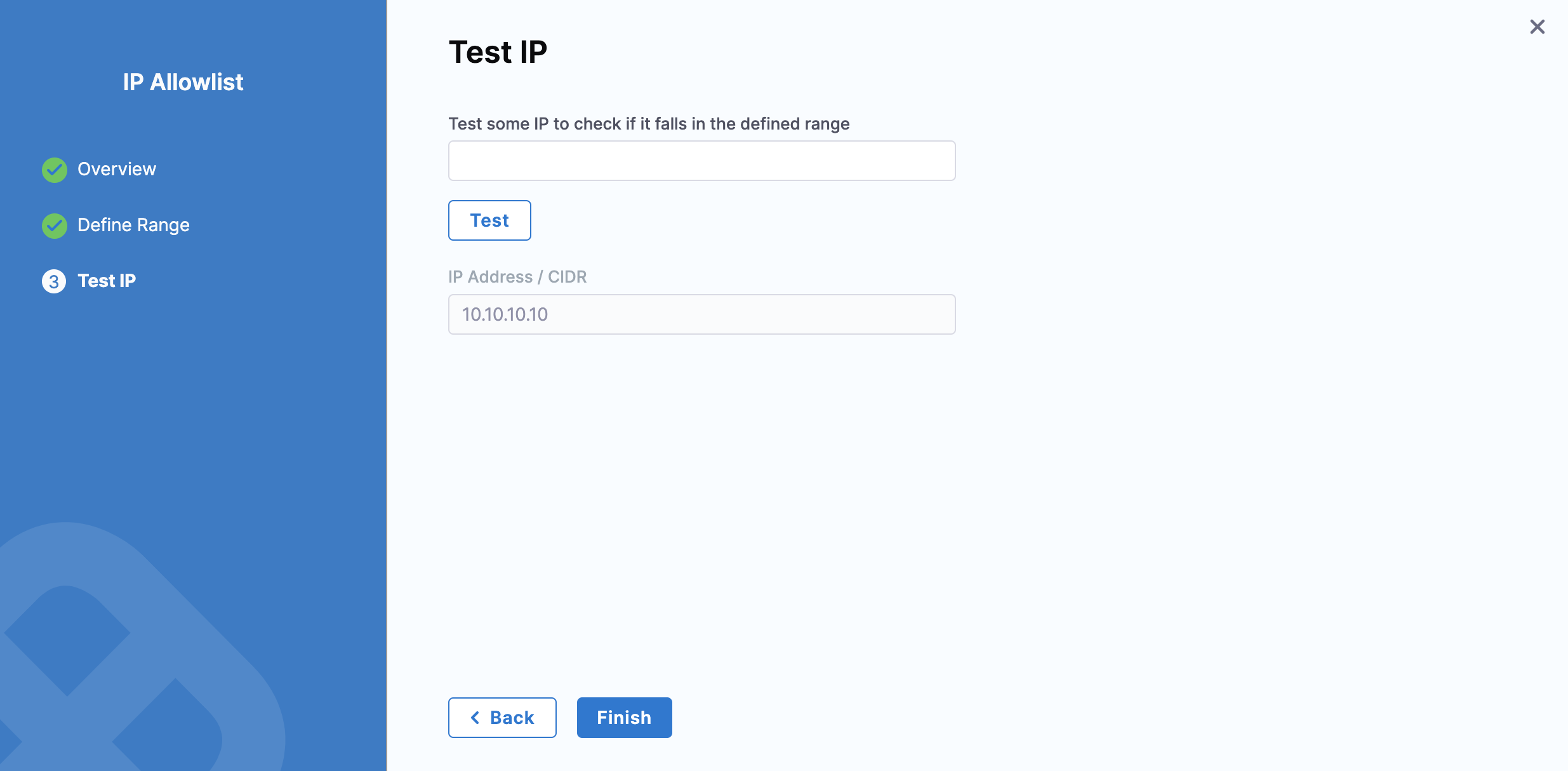 Enter an IP address to check if it falls within the IP address range configured in the previous step.
