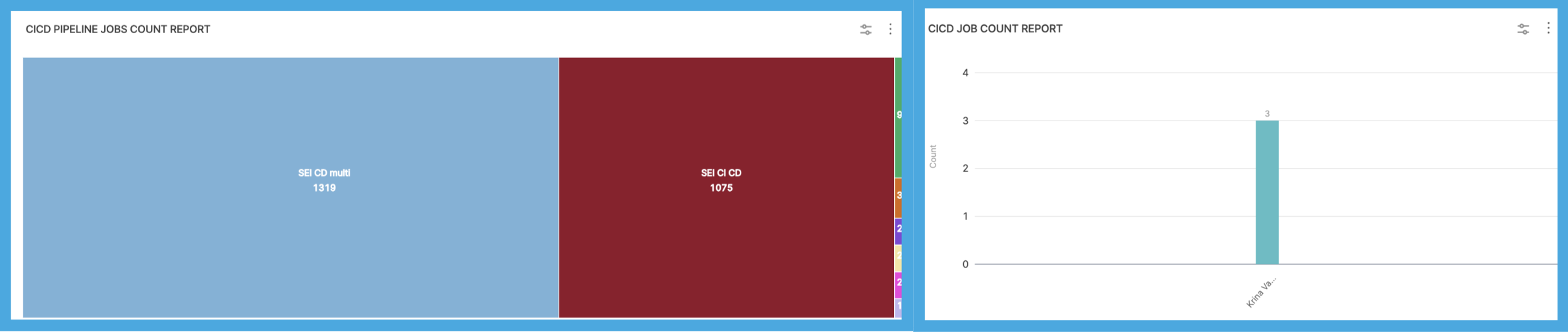 Use CI/CD job reports to analyze metrics and trends related to CI/CD job runs. This data helps you achieve a comprehensive understanding of how CI/CD practices have been adopted and utilized within your organization, including: