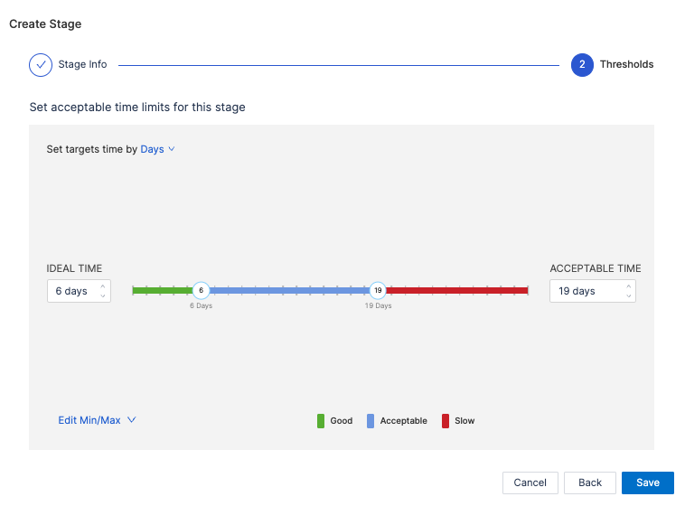 - Set acceptable time ranges for the stage, such as Ideal Time and Acceptable Time.