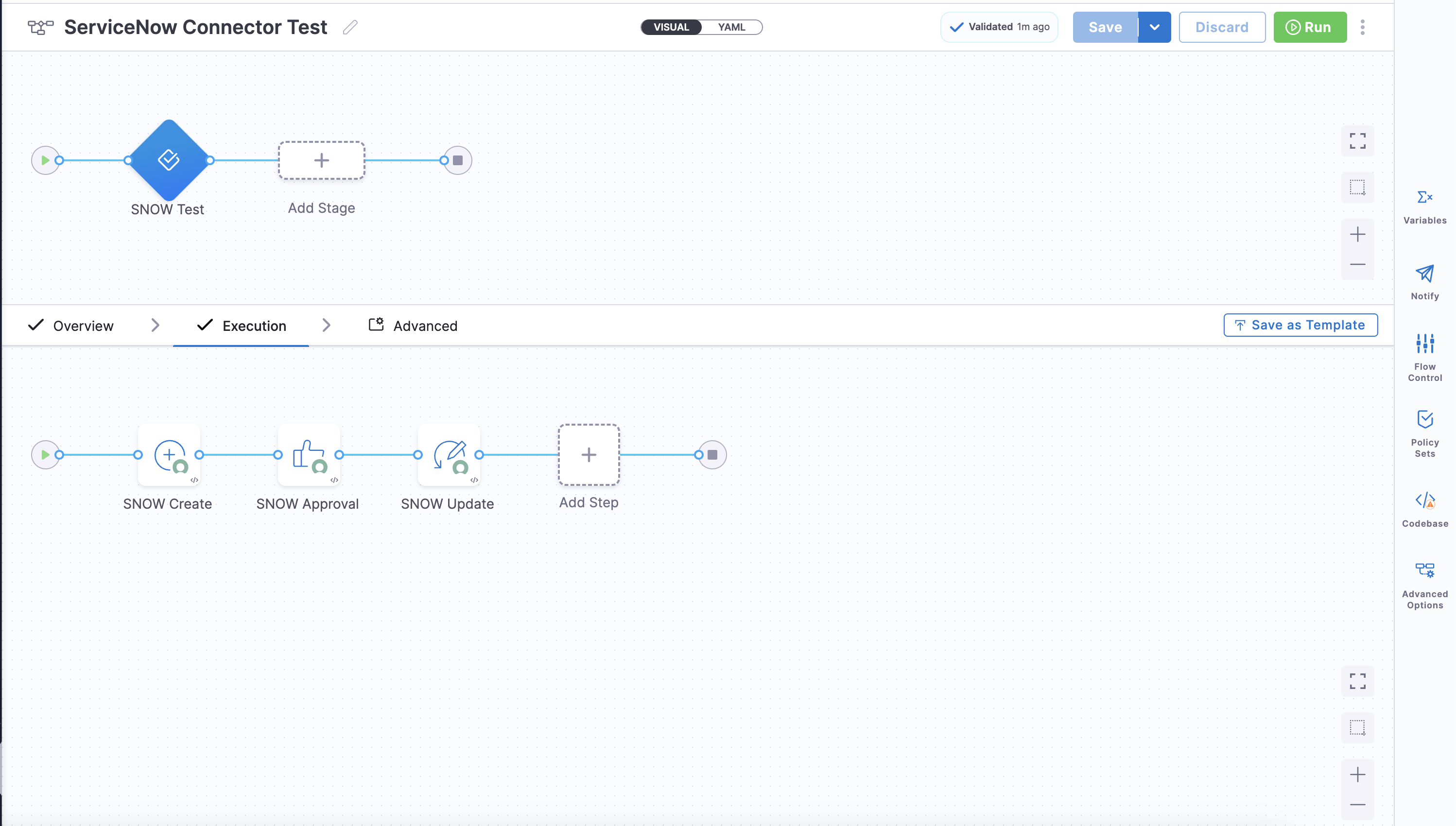 These steps confirm that the ServiceNow Connector is properly configured and functional within Harness.